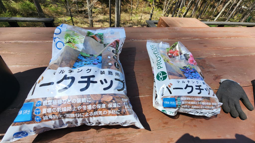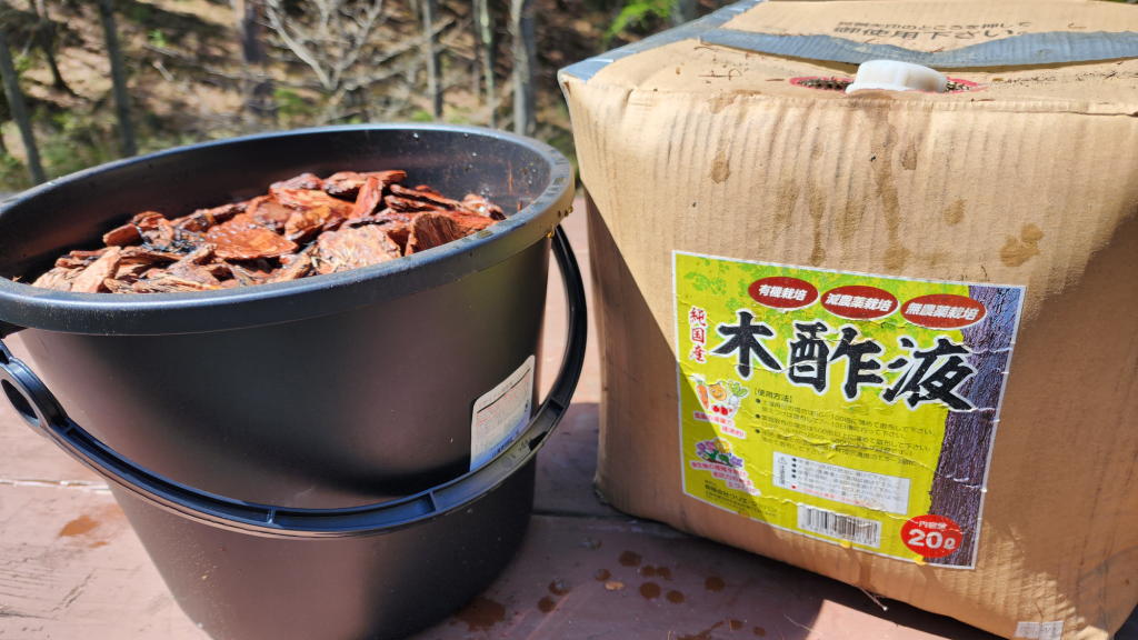 これに鹿や猪、害虫などが忌避する木酢液を加えて新たなチップを投入。