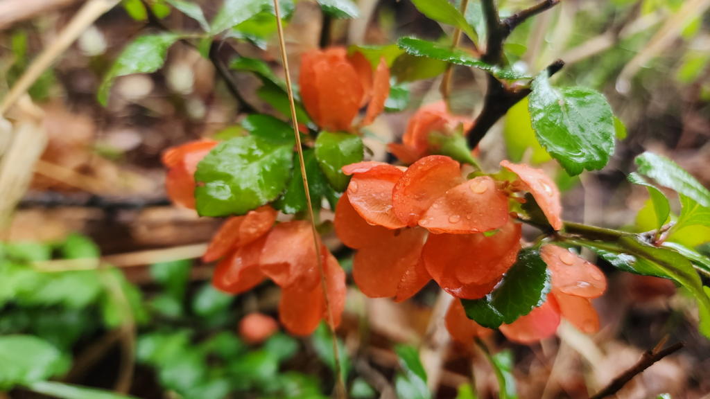 「クサボケ」のオレンジ色の花はちょっと浮いた感じかな。