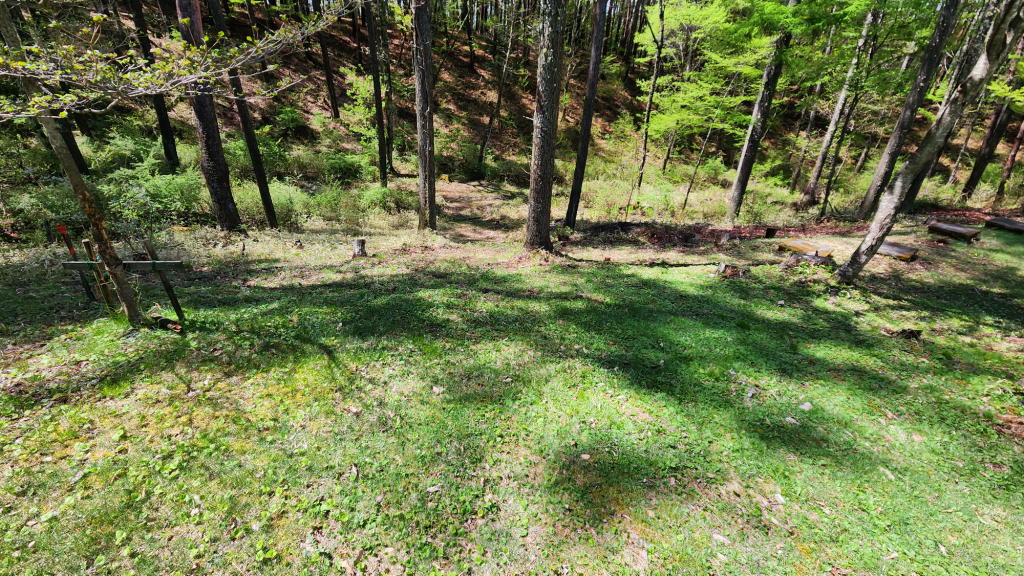 財産区林の斜面を上って庭のフラットスペースへと移動。