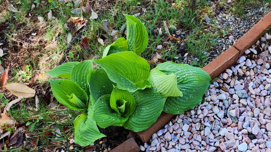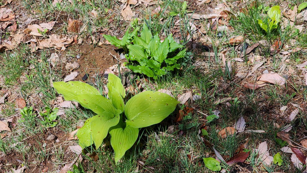 そして、オフィスエントランス周辺ではホスタさん達が一斉に葉を広げ始めた。
