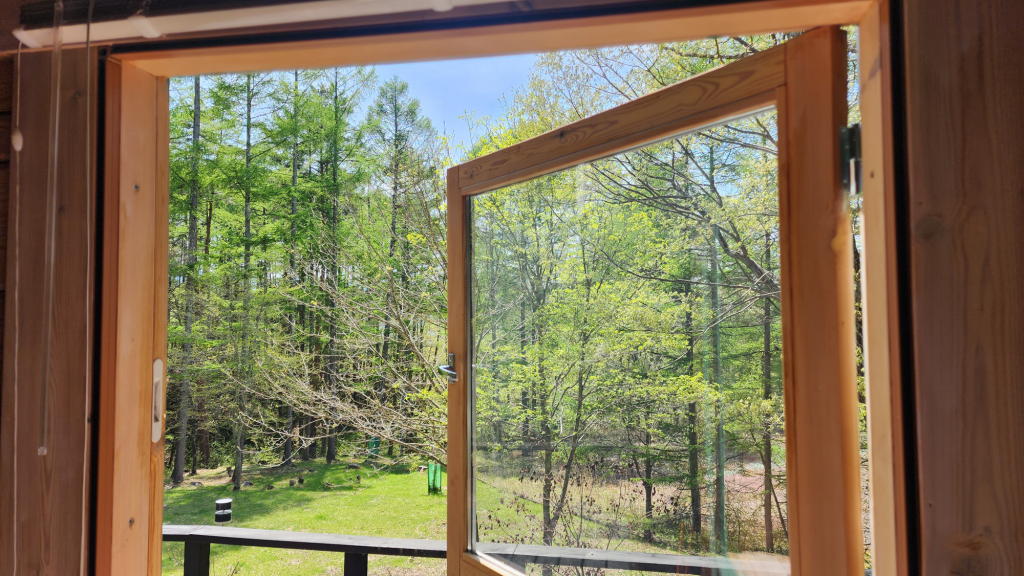 そんな事を考えながら、オフィスの窓から庭と財産区林の木々の様子を眺めた。