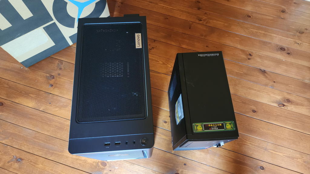 これまで使用していたLenovoのデスクトップと並べてみると、ハイスペック ゲーミングPCの「巨体」が際立つ。