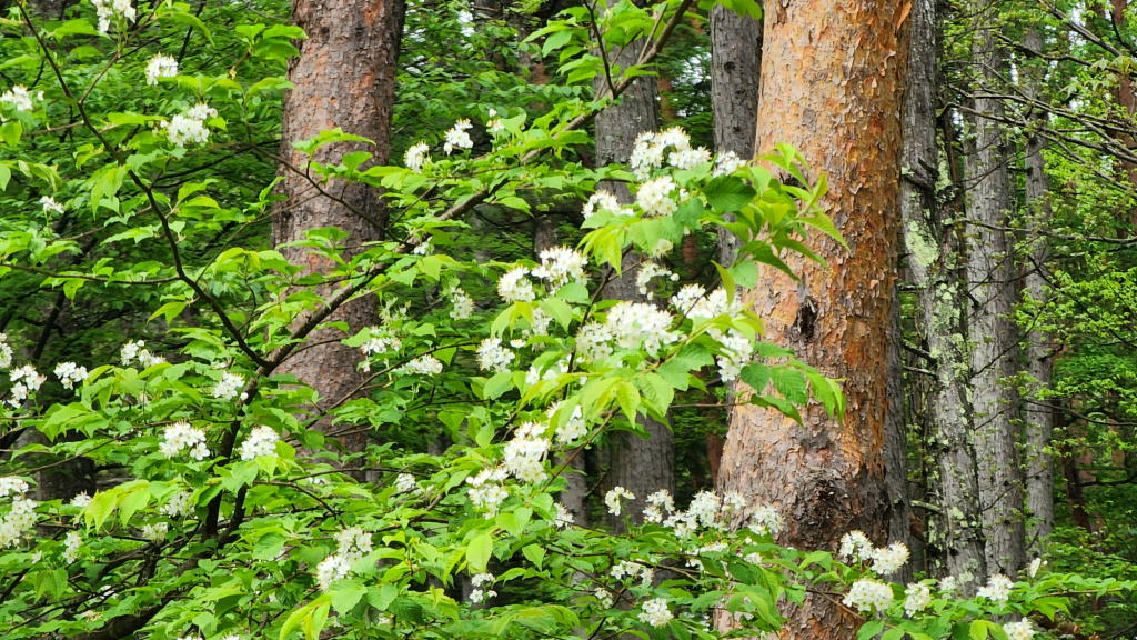 深山桜とウワミズザクラは、そのアドバイスにより伐採を免れた木の一部である。