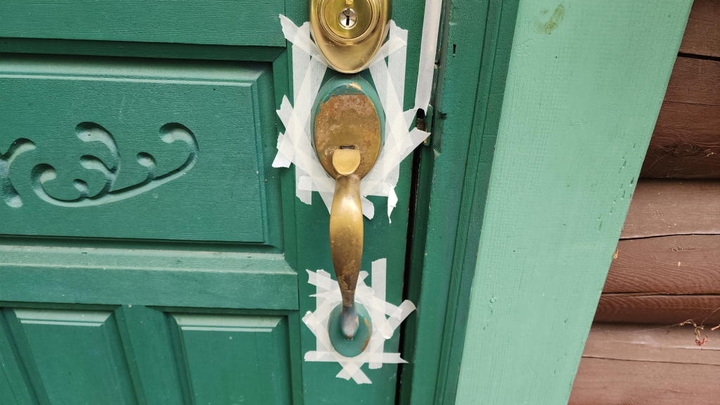 そんなわけで、ドアに取り付けたままの状態で磨き上げる事にした。