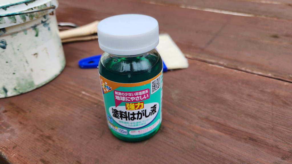まずは周辺にマスキングテープを貼って、塗料落としを塗った。