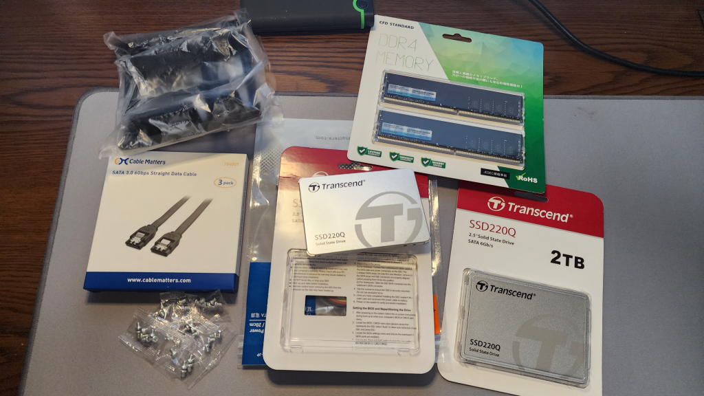 自宅書斎デスクトップのメインは、メモリを16GBから32GBへ増設、残り容量が乏しくなりつつあったシステムドライブを512GBから1TBのSSDに換装、さらに 2TBのSSDを増設する事にした。