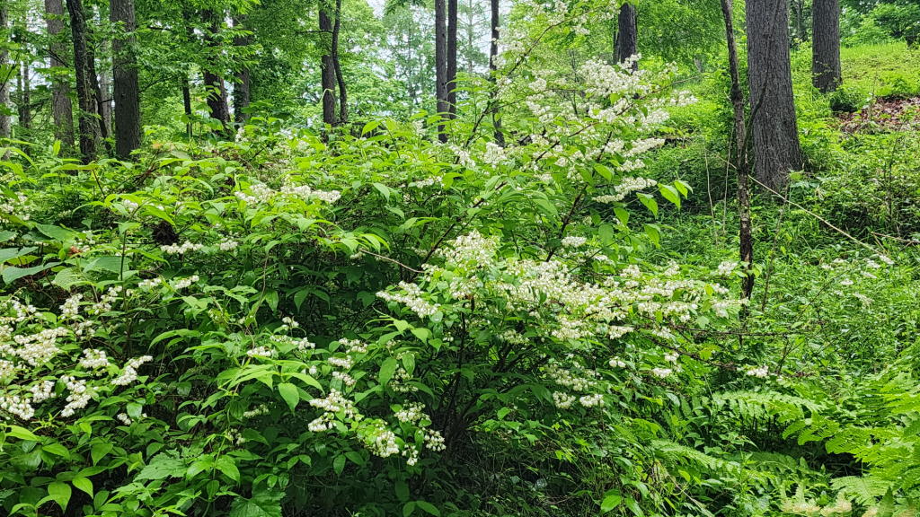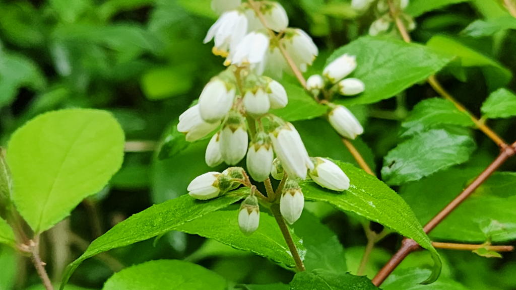 財産区林内に咲く花の現在の主役はマルバウツギである。
