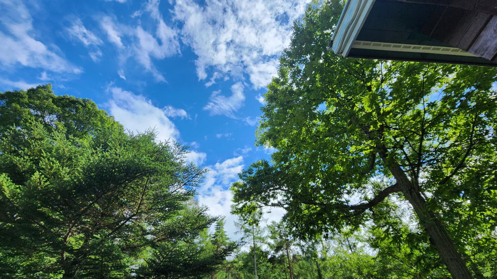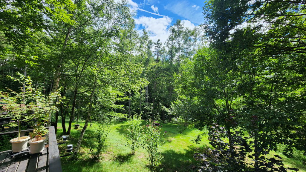窓を開いていれば、フィトンチッドを含んだ涼風が室内を満たしてくれるので、エアコンの必要はまったくない。
