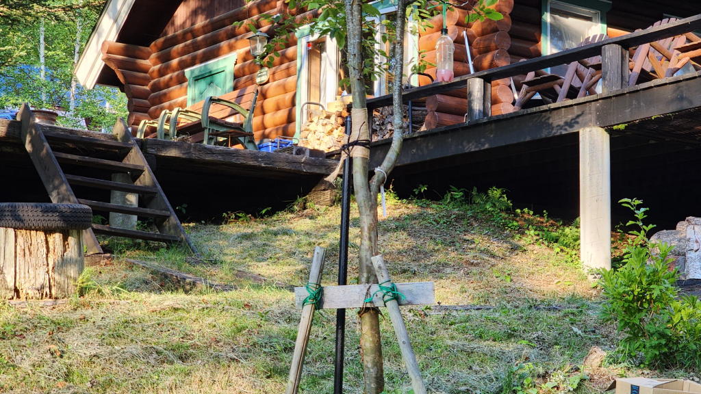 そんなわけで、台風7号接近前に、庭の樹木に風害対策を施すことにした。