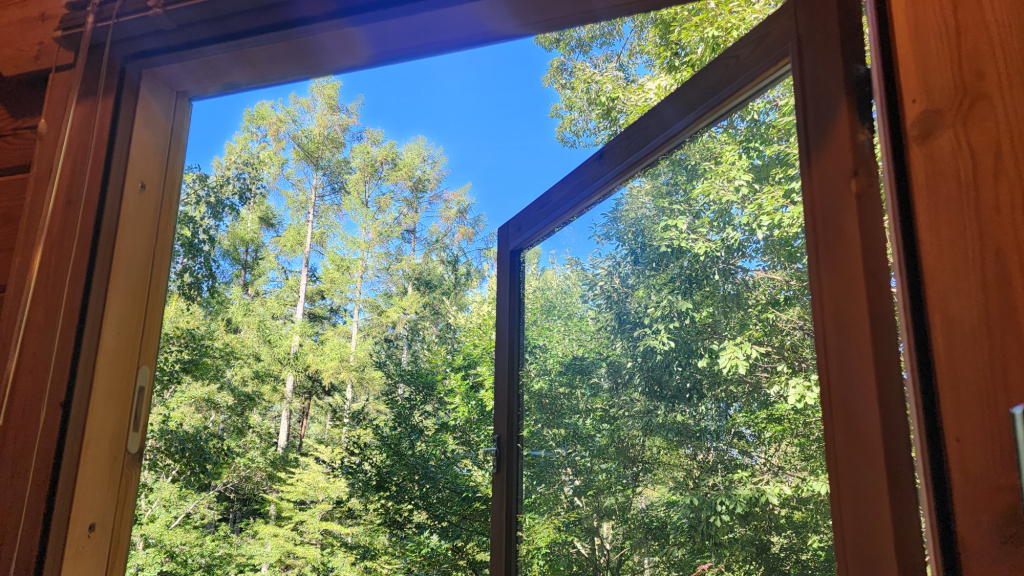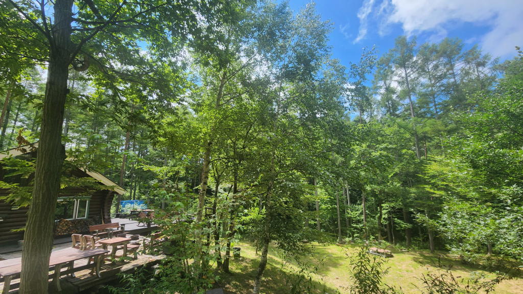 メインウッドデッキから周辺の空と森をグルッと見回した。