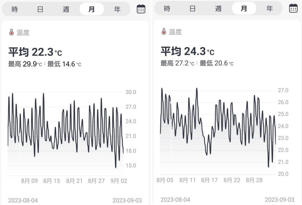 久し振りの書斎に入って、真っ先に自宅庭に設置した温湿度モニター(八ヶ岳に設置しているのとまったくの同型機種)の1ヵ月の気温推移を確認。