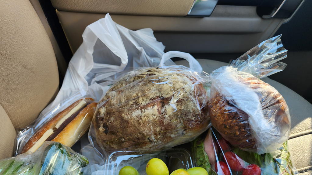 釈迦堂PAで、桔梗屋さんのお気に入りのお弁当をランチ用に購入。