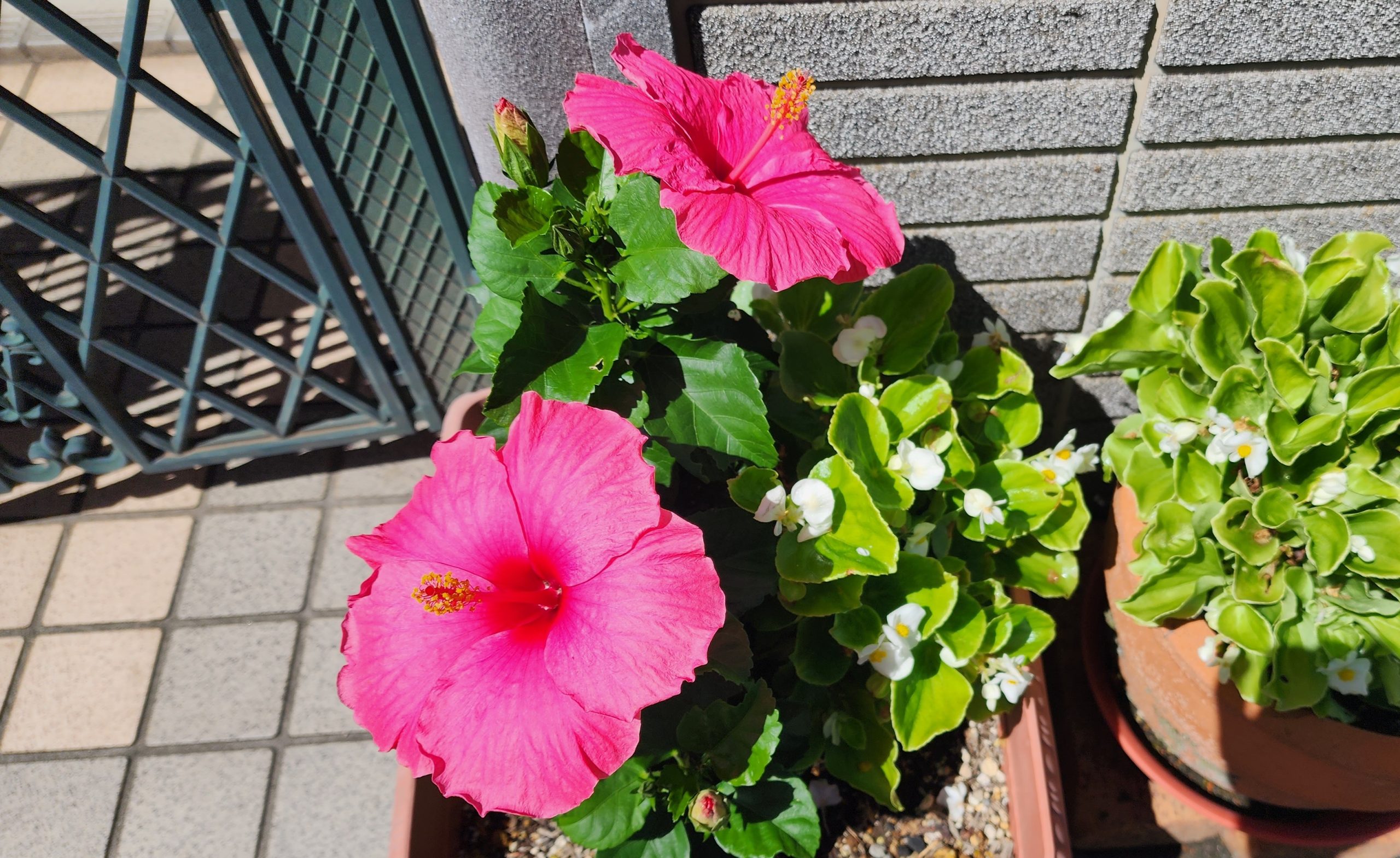 すると「ハイビスカスなのよ。何年か前から置いているのだけど、今年はすごく元気なの。とっても暑いからかしら?」との答えが返ってきた。