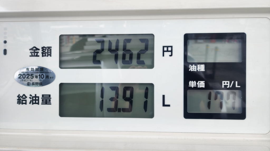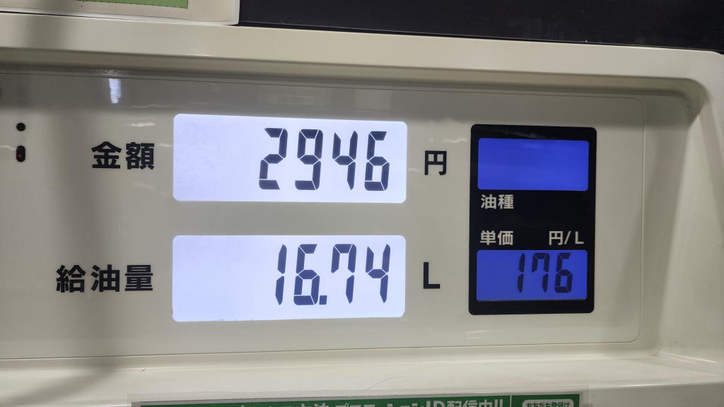 給油を終えて(°0°) なんと実際のレギュラーガソリンの価格は177円であった。