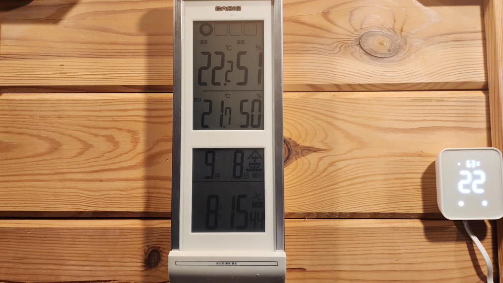 5日間締め切りの状態であったオフィスの室温も湿度も変化なし。