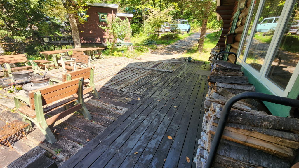 メインウッドデッキの一番古い部分は今年で22年目、新しい部分でも20年目を迎える。