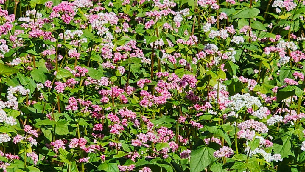白い花の蕎麦がかなり混じっているから、そんな印象をうけるのだろうか…