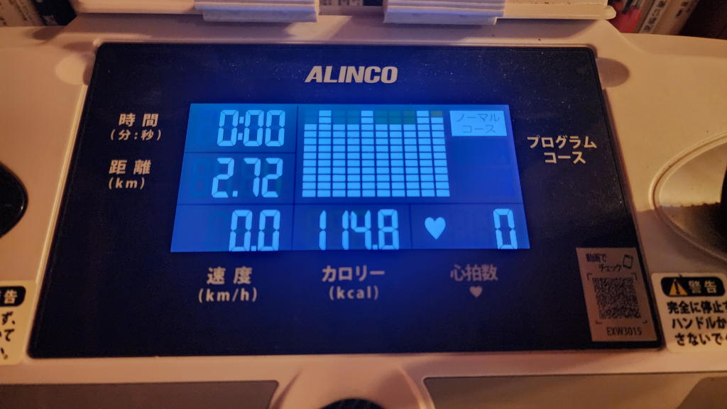 いつものように午前6時前に目覚めて、今日は6時半からマシンウォーキングを開始。