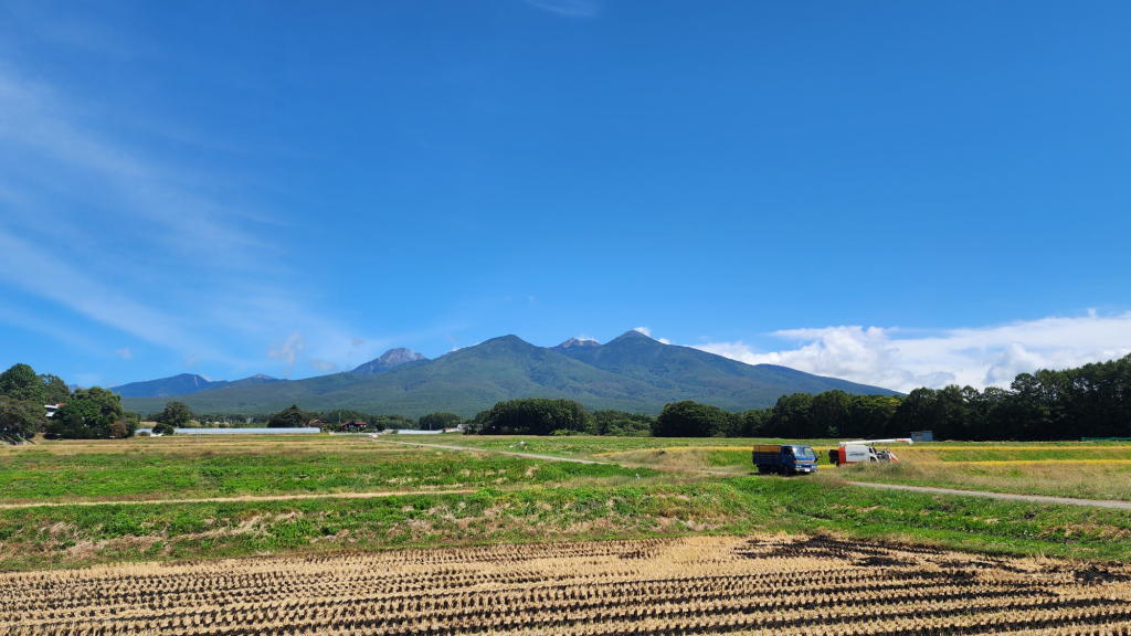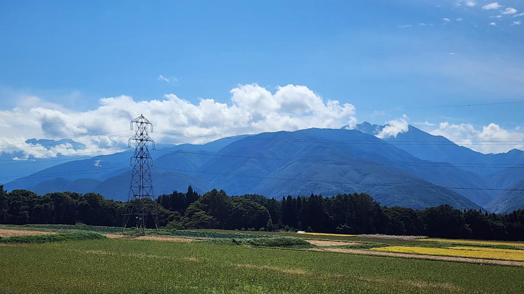 オフィスに戻ろうとミニパジェのドアを開いた際、無意識に南アルプスの山々の方角を見てしまった。