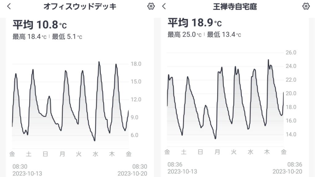 この1週間の平均気温は、八ヶ岳 10.8℃に対して、自宅 18.9℃、その差は 8.1℃か…