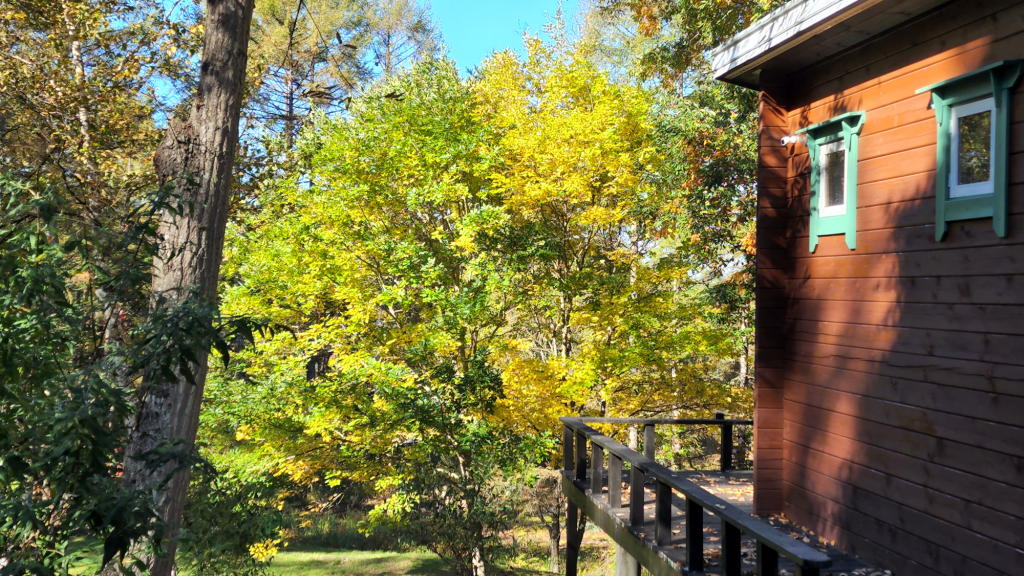 そんなわけで、ここ数日は八ヶ岳の気温と敷地内の紅葉の状況を確認するのが朝の日課となっているんだ。