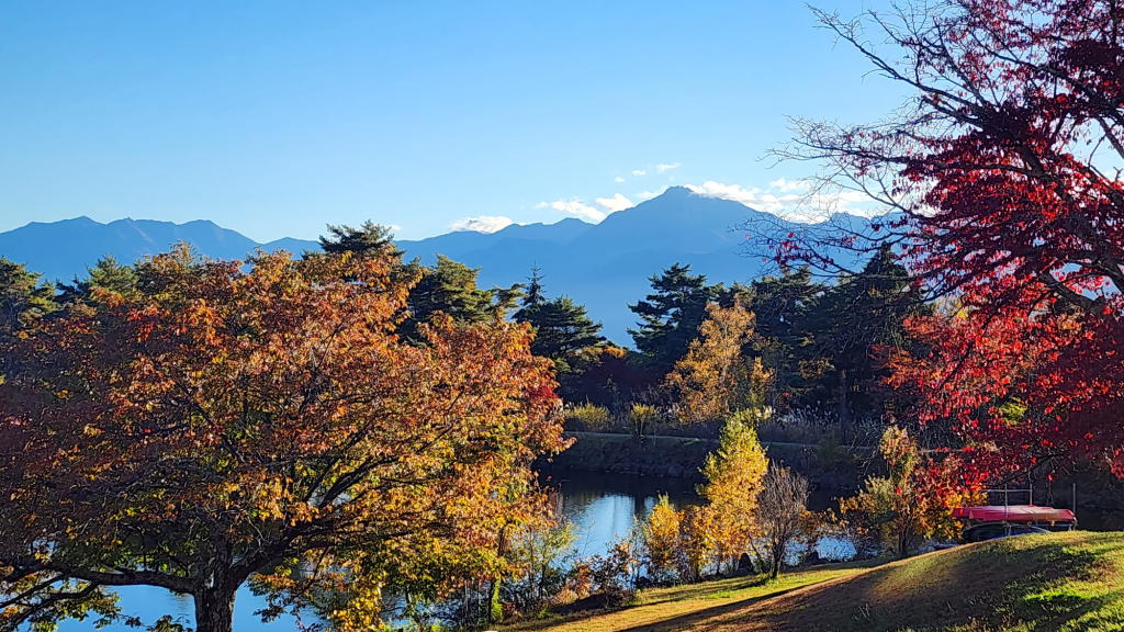 しかしまあ、この季節の八ヶ岳は、どこに行っても山並みと紅葉が美しいな…