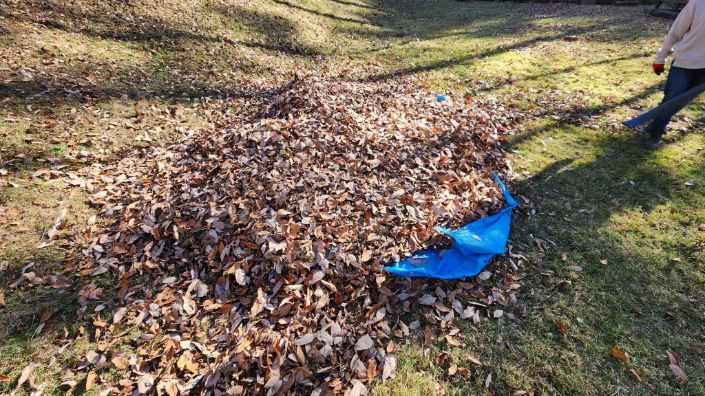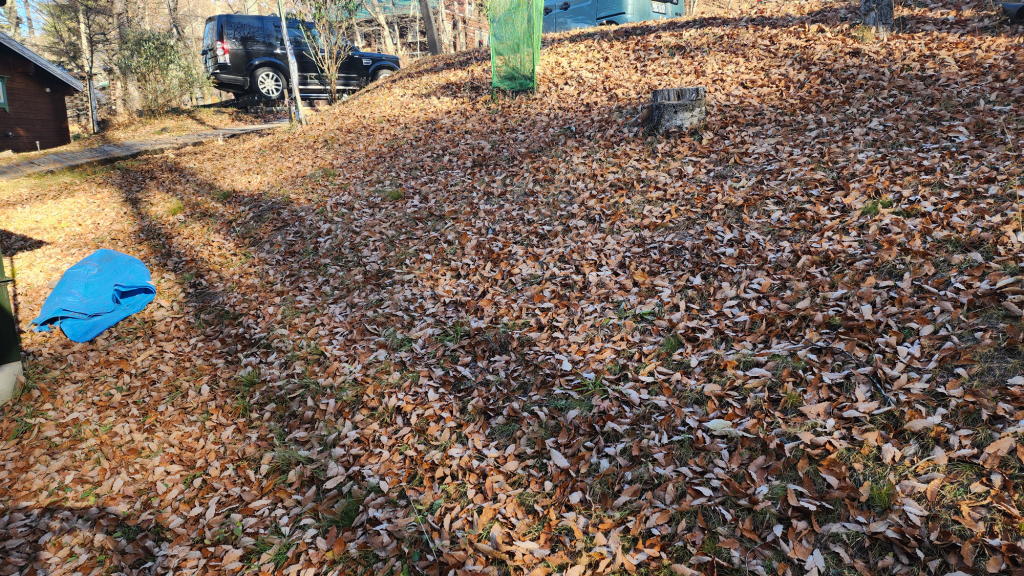 結局、午前中約2時間、午後1時間半程の作業で、地面に落ちた葉のブロア処理を完了。