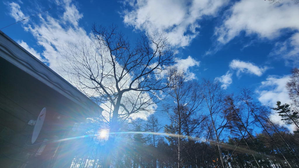 八ヶ岳の敷地内には朝の太陽の光が強く降り注ぎ、青空が広がり始めているではないか…