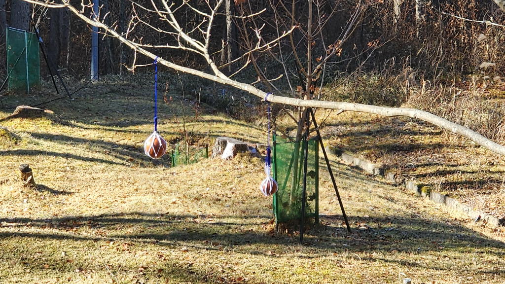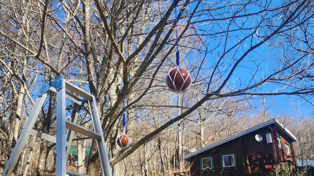 確かに、ブラウンだと冬の庭に吊した場合の違和感は小さいな。