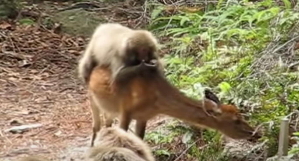 私も正直驚いて、鹿と猿の関係を検索してみたら、鹿の背中に乗った猿の写真や動画が大量に見つかった。