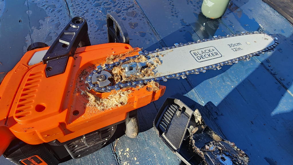 「やったね!」と思った瞬間、ポールチェンソーのソーチェン部分が思わぬ方向に弾かれた。