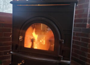 本宅に行くと、薪ストーブの火が赤々と燃えていた。