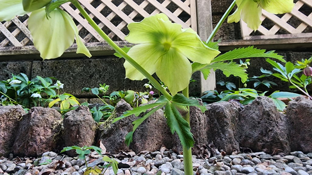 おっと、自宅のロックガーデンではクリスマスローズが満開じゃないか。