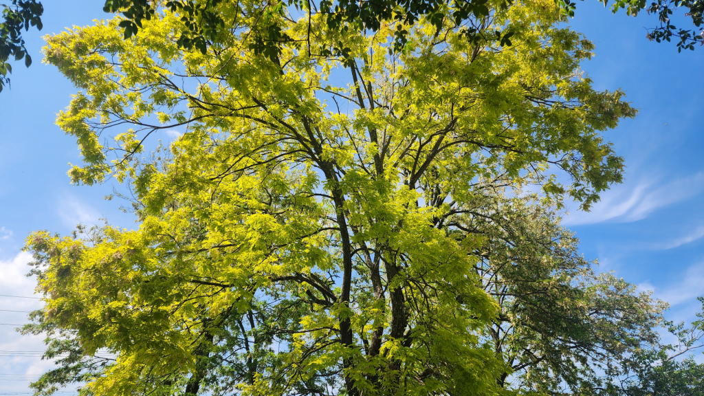 白樺、ハリエンジュ(ニセアカシア)、クリムゾンキング等々、我が家と共通の樹木が多いのも嬉しいな。