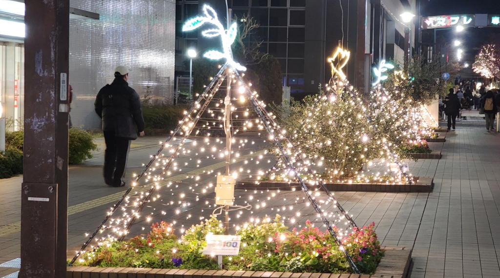 いつもはショボく見えるペデストリアンデッキのイルミネーションが、今日は何となく華やかに感じられた。