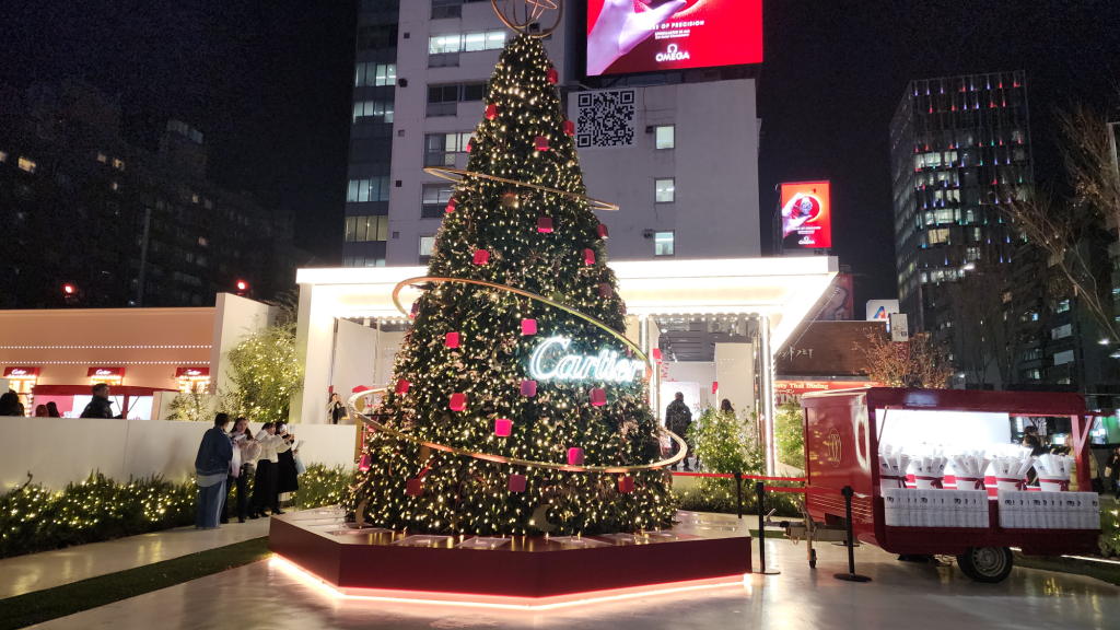 イルミネーションやカルティエのクリスマスツリーが美しく煌めく中、あの「悲しい(侘しい)向日葵」は、まだ紐が切れずにかろうじて立っていた。