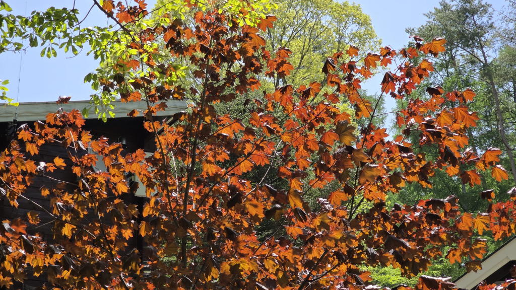 庭作りを「自生種優先主義」に転換する前に植えたクリムゾンキングとシュガーメイプルは、我が家の庭において「異質の調和」を実現する上で、極めて重要な存在なのだ。