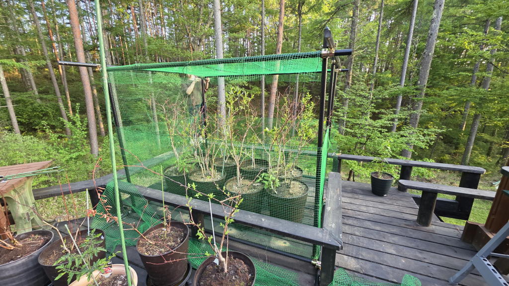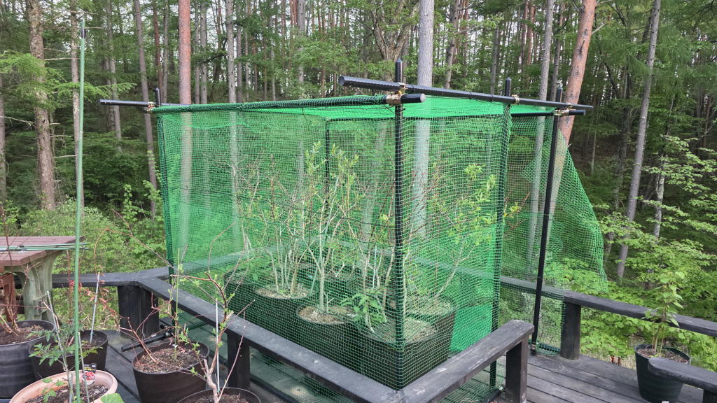 まずは、社主さまに手伝ってもらいながら作業を進めていたブルーベリーさん達の「網のお部屋」の仕上げである。