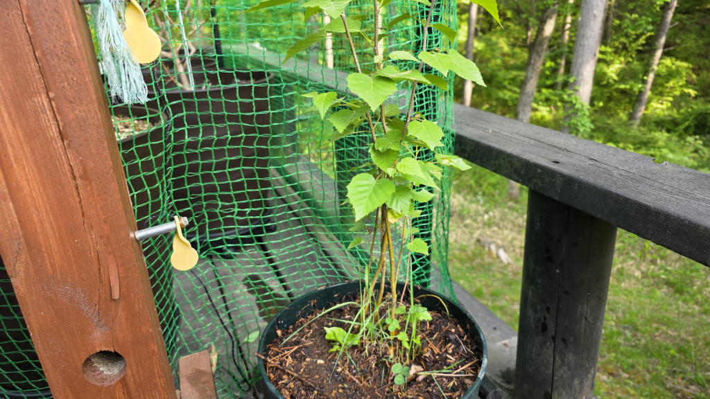 早速、敷地内に自生していた樹高50cm程の白樺を発見して植木鉢に移植・保護。