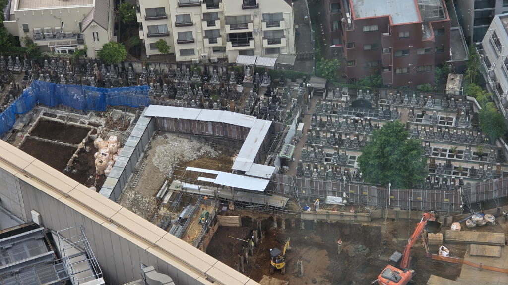 開発工事の広さや形状を上から眺めていると、墓地や寺院を移転させる計画ではないかと思えてきた(あくまでも個人的な印象だが…)