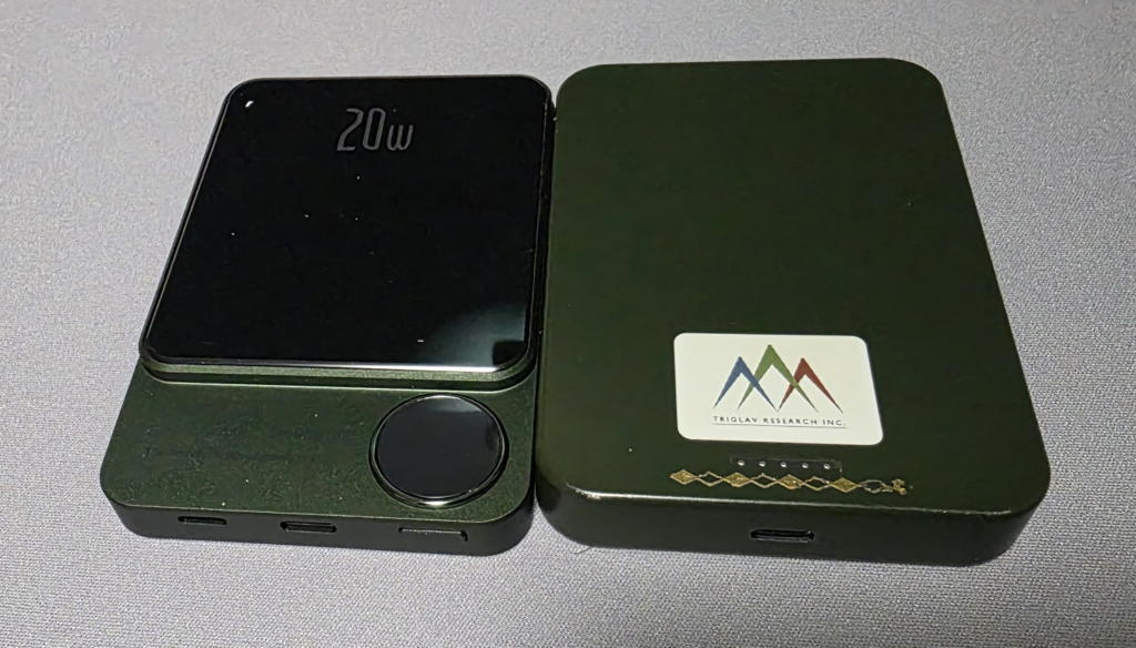 これまで、私のお守り「縄文ポーチ」に収納していたモバイルバッテリーは、PD20W急速充電 容量5000mAhのMagSafe対応タイプ。
