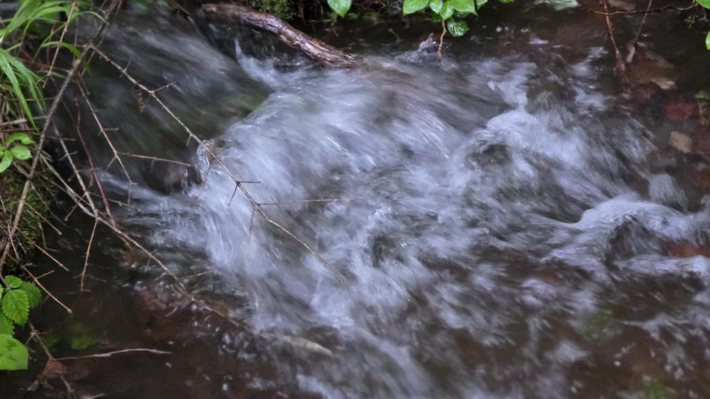 昨日、八ヶ岳に降った雨が小川を形成していた。