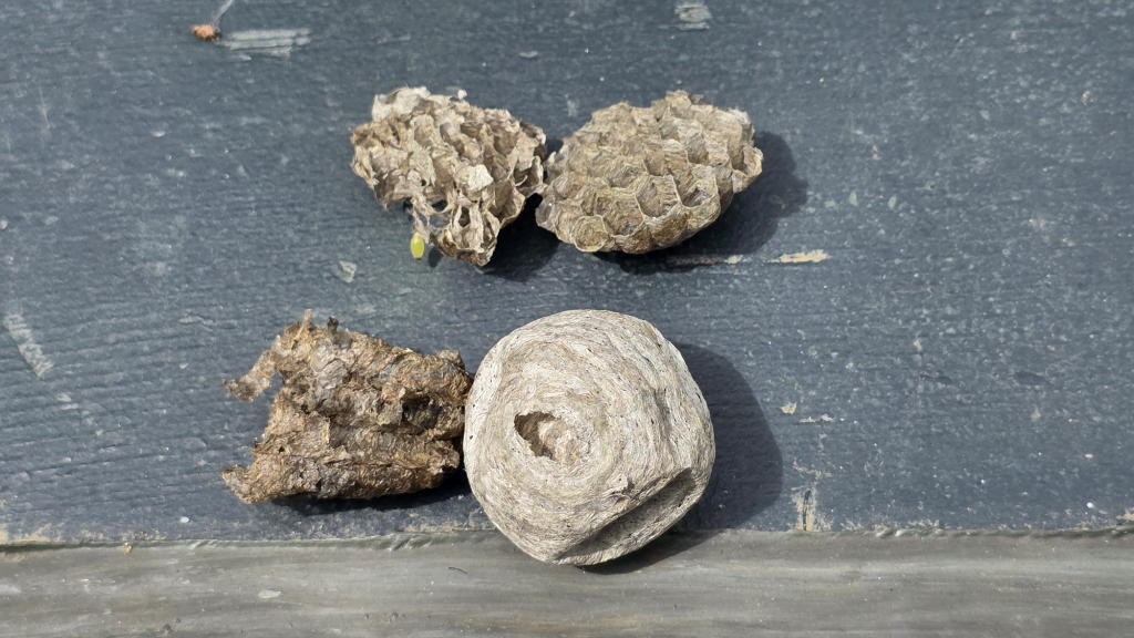 すると、軒下の最も高い位置に4個の小さな巣を発見。