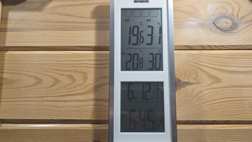 梅雨時には、ログハウスの調温調湿機能のありがたさを実感する。