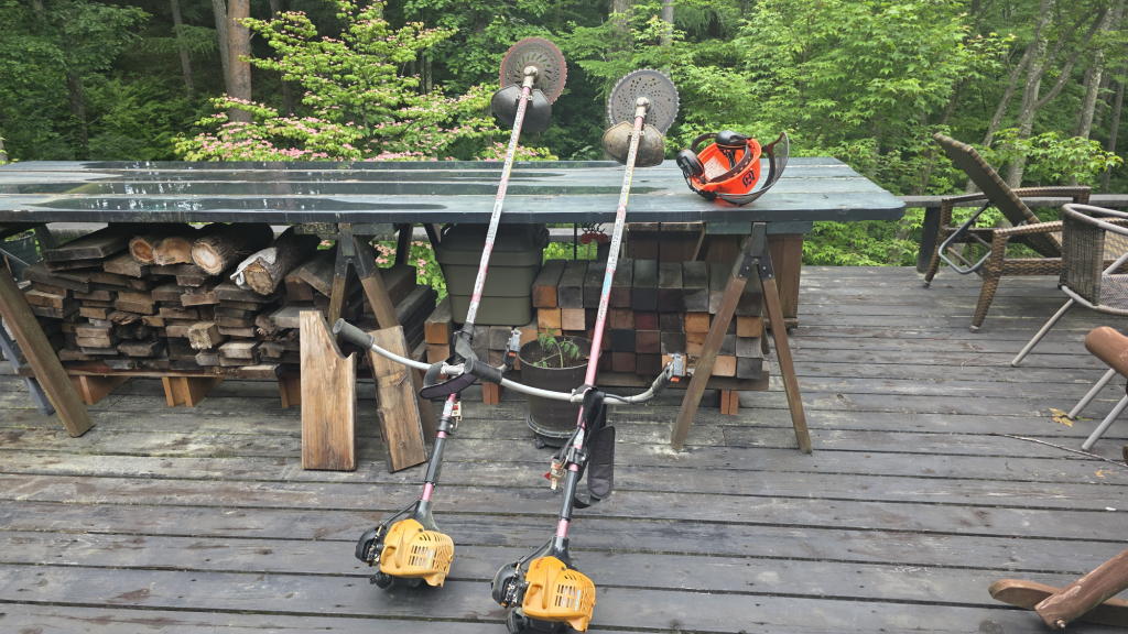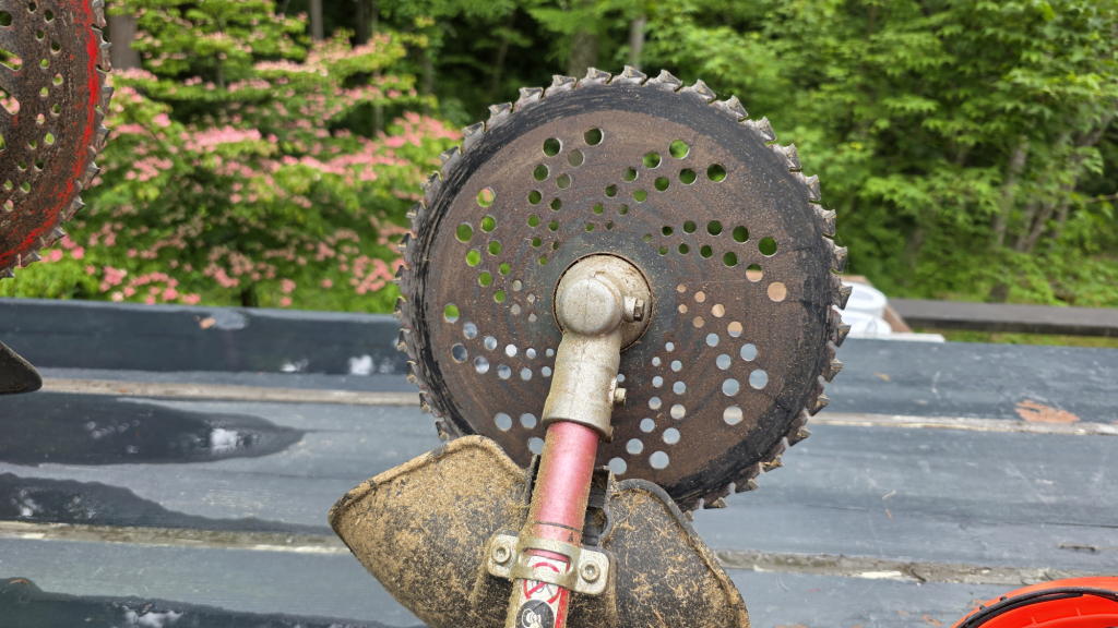 その後、8時半過ぎから、社主さまのバッテリー型草刈機で30分1セット、エンジン草刈機のブラックシャーク刃の方で45分2セットの草刈り作業をした。