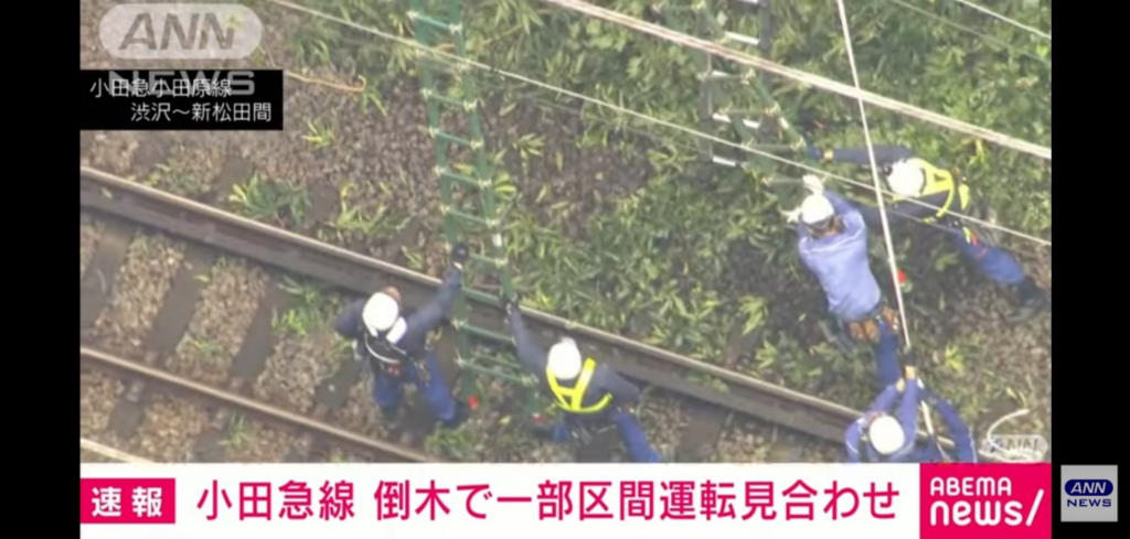 昼前にニュースを見たら、今日の小田急線の倒木による運休の動画が流れていた。