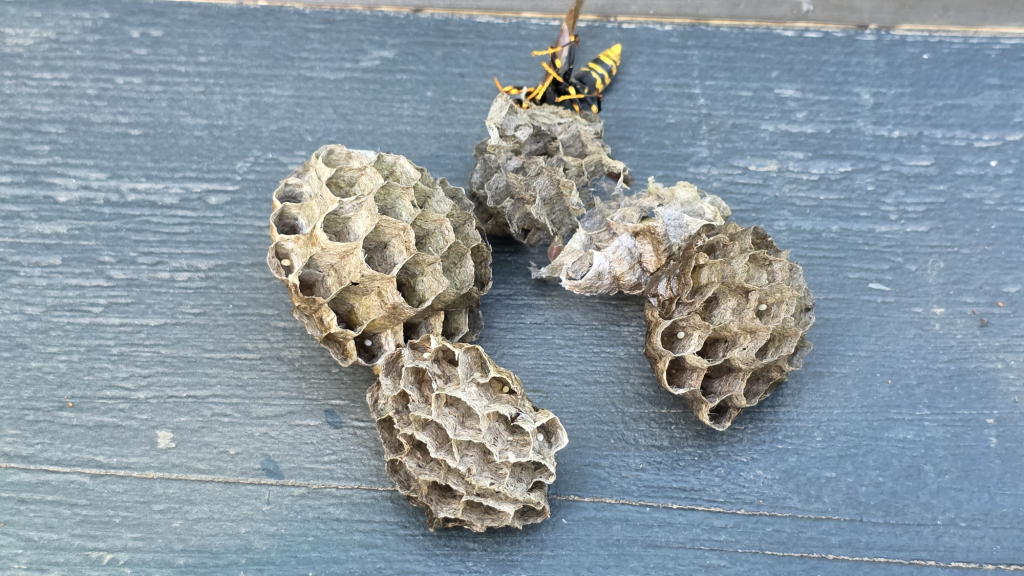 成虫の模様の禍々しい美しさに、ハニカム構造で形成されたまるでシャワーヘッドのような巣の造形美。