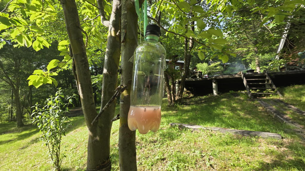 ピンクの誘因液に慣れてしまって、女王蜂が警戒しているのかな?と、思ったのだが、そもそもスズメバチが見当たらないのだ。