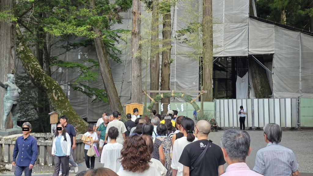 すぐに、この信心深い「善き人々」が、これから行列で茅の輪くぐりをするのだと気が付いた。