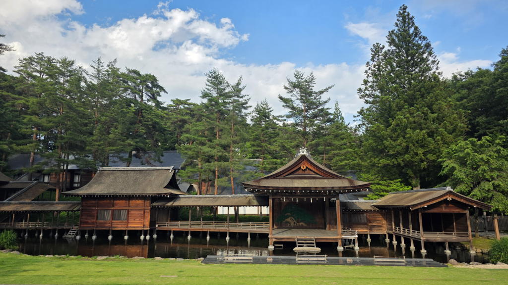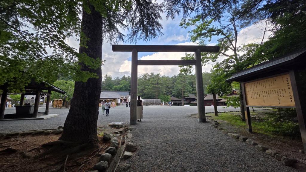 まずは、「茅の輪」は設置されていないものの、大きな何本ものご神木と「水眼(すいが)」の清流が美しい『諏訪大社上社前宮』に参拝した。